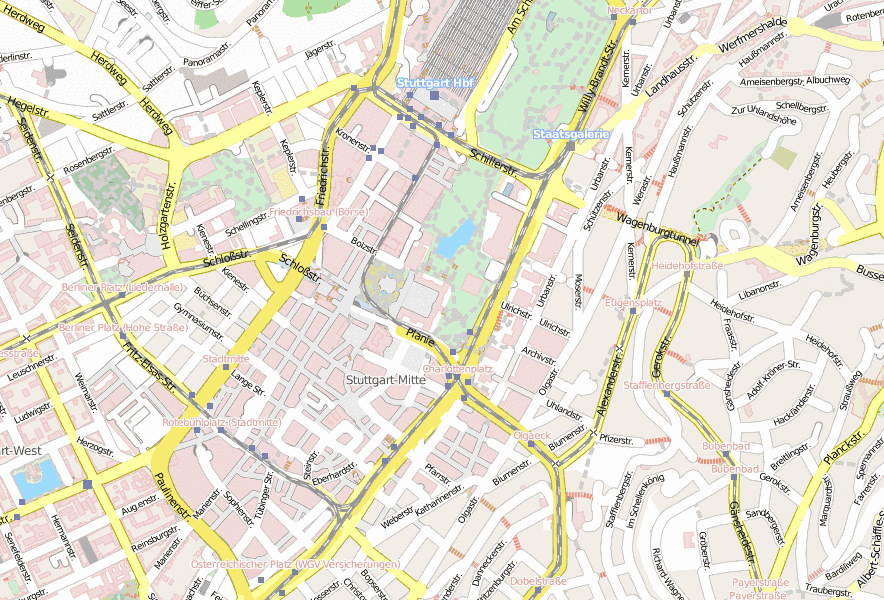 Nur wenige Minuten entfernt findet man bekannte Sehenswürdigkeiten wie etwa Neues Schloss, Kunstgebäude sowie Römisches Lapidarium. Sehenswert sind die folgenden Landkarten: Altes Schloss, Bohnenviertel, Wilhelma und Schloss Solitude